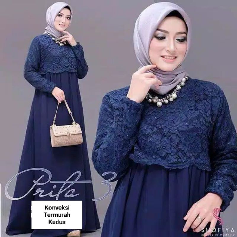 20 model baju gamis brokat pesta untuk orang gemuk agar terlihat lansing.